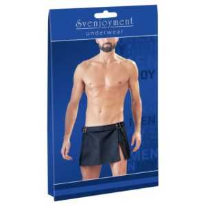 Kurzer Herren-Rock aus festem Webstoff im markanten Gladiator-Style. Mit dekorativen Schnallen und großen Taschen seitlich.