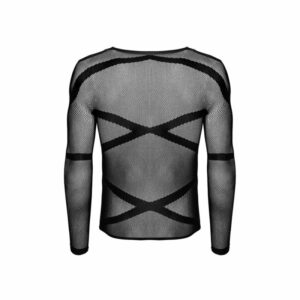 Schwarzes Langarm-Shirt T101 von Obsessive im körperbetonenden Style. Aus weichem elastischen Netz mit eingewebter Riemen-Optik. Trendstyle mit hohem Tragekomfort.
