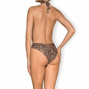 Badeanzug Cancunella aus der Serie Swimwear 2022 von Obsessive im trendigen Leo-Look. Vorne bis zum Bauchnabel tief dekolletiert und in der Taille zum Binden. Der Neckholder ist ebenfalls zum Binden, der Rücken bleibt komplett frei! Die hohen Beinausschnitte zaubern extra lange Beine. Das weiche elastische Material sorgt für optimalen Sitz und hohen Tragekomfort beim Schwimmen, Baden und Sonnen.