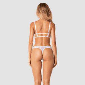 Set Heavenlly von Obsessive mit Soft-BH und String. Aus weißem Feinnetz und Ton in Ton mit bildschöner Blütenspitze in verführerische Szene gesetzt. Rundum weich und elastisch für hohen Tragekomfort. Länger geschnittener Soft-BH mit zwei Hakenverschlüssen im Rücken, die genauso verstellbar sind wie die Träger.