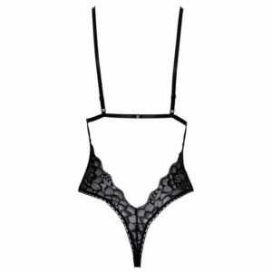 Eleganter Body von kissable komplett aus feiner schwarzer Spitze. Rundum weich und elastisch für höchsten Tragekomfort. Verführerisches Styling mit soften Cups und Dekolleté-Stretchbändern, sowie taillenbetonender Satin-Bindeschleife vorne. Extra hoch ausgeschnitten, werden Po und Beine aufregend betont. Im Rücken mit Hakenverschluss. Die Träger sind passend verstellbar.