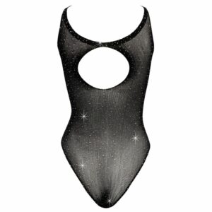 Body von Cottelli FANTASY aus feinem weichem, semi-transparentem Stretchmaterial – über und über mit verschieden großen Strass-Steinchen besetzt. Vorne mit eingewebter Rankenoptik. Im oberen Rücken schöner Cut-out. Alles nahtlos ohne prägnante Säume gefertigt und elastisch anschmiegsam für hohen Tragekomfort.