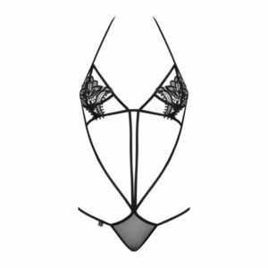 Der Stringbody Luiza von Obsessive verführt mit seiner Offenherzigkeit, die nicht viel Platz für Fantasie lassen. Über den Nippeln liegen zarte florale Stickereien – ein Eyecatcher für Brust-Liebhaber:innen. Im Nacken und Rücken zu knoten lässt er sich bequem anziehen.