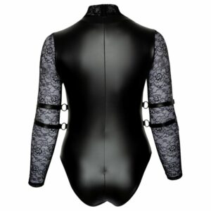 Detailverliebter Body von Cottelli BONDAGE PLUS im anschmiegsamen Mattlook mit langen Spitzenärmeln und Stehkragen mit Frontring. Vorne in Harness-Optik mit verstellbaren Riemen, hinten sorgfältig eingearbeiteter langer Reißverschluss. Für spontane Leidenschaften lassen sich die beiden Reißverschlüsse über den Brüsten und der Reißverschluss im Schritt schnell öffnen. Für fesselnde Lustmomente sorgen die 4 Armfesseln, die mit ihren Karabinerketten an den seitlichen Ringen der Taillenriemen befestigt werden können. Die Fesseln sind mit ihren Klettverschlüssen schnell angelegt und passend verstellbar. Die 2 vorderen verstellbaren Strapse sind vom Slip-Teil abnehmbar.