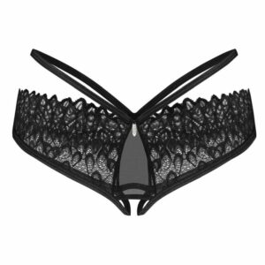 Verführerisch geschnittener Slip ouvert Donarella von Obsessive in schwarzer Transparenz mit aufwendiger Stickerei. Stylisches Stretchband-Bund mit kleinem Schmuckelement vorne. Rundum weich und elastisch für vollen Komfort. Im Schritt verführerisch offen.
