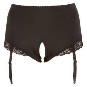 Taillenhoch geschnittener Slip ouvert mit zarter Blütenspitze am Beinabschluss. Die verführerischen Strapse sind verstellbar und können bei Bedarf auch ganz abgenommen werden. Mit figurschmeichelnder Schnittführung und festem Stoff in der Front, der den Bauch sanft modelliert.