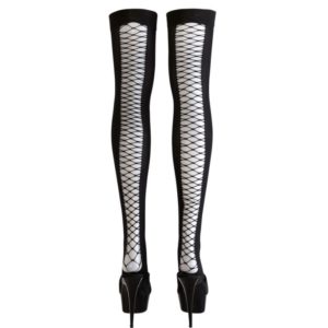 Blickdichte Strümpfe mit auffälliger Netznaht hinten. Ein eingearbeitetes Gummiband sorgt für einen rutschfesten Sitz.