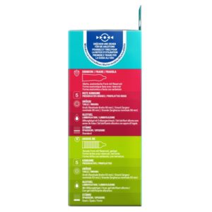 Diese Vorratspackung enthält Durex-Kondome in der altbekannten, besten Qualität und in vier verschiedenen, spannenden Sorten – Gefühlsecht Extra Feucht, Gerippt/Genoppt, mit Erdbeeraroma, Gerippt.