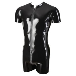 Dieser schwarze Kurzoverall mit halbem Arm und kurzem Bein liegt extra eng an und schmiegt sich wie eine zweite Haut formschön an Ihren Körper. Der 2-Wege-Reißverschluss vom Hals bis über den Po lässt sich von beiden Seiten öffnen und lädt so zu spontanen Fummel-Spielchen ein…