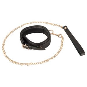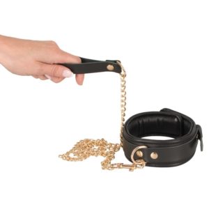 Diese Halsfessel ist aus besonders hochwertigem Leder, welches chromfrei gegerbt wurde. Die Innenseite ist gepolstert und schmiegt sich so perfekt an den Hals an. Der edle Look des Leders wird durch die goldenen Details an Schnalle und Kette der Leine verstärkt. Also perfekt für alle die, die es extravagant mögen.