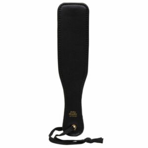 Kleines handliches, hochwertiges Schlagpaddel Bound to You Small Paddle von Fifty Shades of Grey mit unterschiedlichen Schlagseiten für vielseitige Empfindungen von zart bis hart: Eine Seite seidig softer Velours (zum Streicheln), andere Seite stilvolles glattes Lederimitat (zum Schlagen). Mit Hand-/Aufhängeschlaufe.