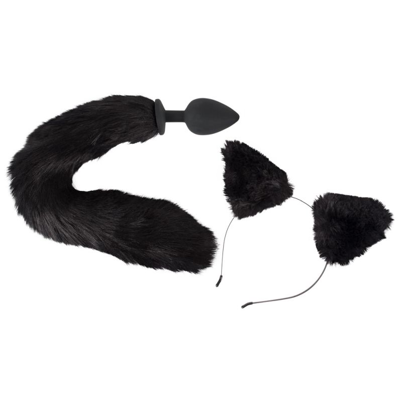 Mit diesem schwarzen Set aus Analplug mit Katzenschwanz und Haarreifen mit Katzenohren (innen rosa) sind animalische Analspiele vorprogrammiert!