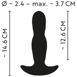 Vibro-Analplug RC Inflatable Massager von ANOS für ausfüllende Anal-Stimulationen mit abgerundeter gerillter Spitze, die sich dick und prall aufpumpen lässt. Die Vibrationen sind beim Tragen des Plugs auch am Perineum stark spürbar.
