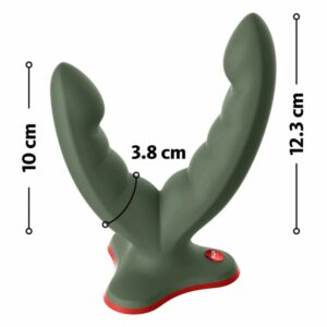 Flexibler Doppeldildo Ryde von Fun Factory im einzigartigen Design mit 2 Auslegern, angenehm glatter Oberfläche und stimulierenden Rillen. Aus seidig softem Silikon für abwechslungsreiches Spiel: Sanfte Schaukelbewegungen, intensives Reiben und dynamisches Stoßen. Mit starkem Saugfuß zum Fixieren auf glatten Oberflächen, um ihn freihändig zu bespielen. Dazu kompatibel mit Strap-ons und Harnessen für aufregende Doppelpenetrationen zu zweit.