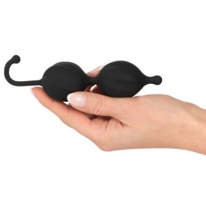 Liebeskugel-Duo mit Halt gebenden Strukturwellen und elastischem Rückholbändchen. Die Kugeln eignen sich für ein effizientes Beckenbodentraining: In ihrem Inneren rotieren Kugelgewichte und lösen bei jeder Bewegung Schwingungen aus, die zu kräftigenden Muskelkontraktionen führen. Mit ihrem Gewicht von 131 g sind die Liebeskugeln ideal für bereits geübte Expertinnen. Aus seidiger Soft Touch Textur.