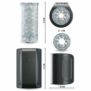 7 Rotationsmodi (links oder rechts herum) sorgen beim Rundum-Verwöhnen für den richtigen Drive und sind per Knopfdruck direkt am Toy bequem steuerbar. Auch unter/im Wasser, denn der Rotating Masturbator ist wasserdicht.