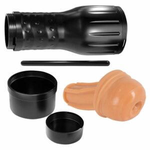 Masturbator von Pussy to go in Vagina-Optik in diskreter, griffiger Dose mit Schutzkappe beidseitig. Der Lustkanal aus hautähnlichem Material ist innen mit ausgeprägten Noppen und Rillen versehen, die für eine intensive, orgasmuswirksame Massage beim Handjob sorgt. Der Masturbator ist zur leichten Reinigung hinten offen und aus der Dose herausnehmbar. Ein Stab stützt die Masturbator-Sleeve im Inneren, schützt diese somit vor Verklebungen und wird vor Gebrauch entfernt.