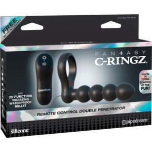 Stramm sitzender Penisring mit fest arretiertem Anal-Kugelvibrator. Der Penisring wird übergestreift und schon ist ER mit einem zweiten Penis ausgestattet, um sie doppelt zu beglücken! Der Penisring unterstützt dabei wirkungsvoll seine Erektion dank Blutstau-Effekt. Die 20 Vibrationsmodi des Analvibrators sind über die kabellose Fernbedienung bequem steuerbar. Batterien: 2x AAA (nicht beiliegend). Batterien: 3x LR44 (beiliegend).