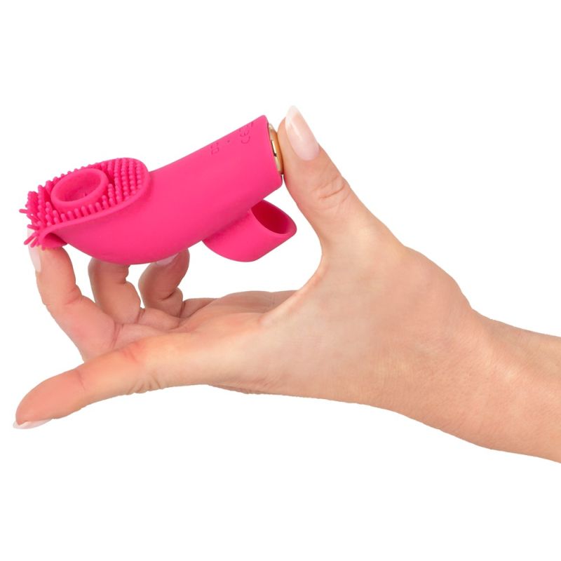 Licking and Pulsating Finger Stimulator von Sweet Smile mit sich Auf-und-Ab-bewegender Zunge in 10 Geschwindigkeiten und Pulsator/Saug-Funktion in der soft genoppten Auflagefläche. Alles bequem per Knopfdruck direkt am Toy steuerbar. Die breite dehnbare Schlaufe sorgt dabei für rutschfesten Sitz am Finger. Rundherum aus seidig-softem Silikon gefertigt für ein höchst angenehmes Haut- und Streichelgefühl beim Verwöhnen.