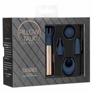Der Desires von Pillow Talk aus der Serie Secrets ist ein handlich kleiner Vibrator mit 5 verschiedenen, leicht austauschbaren Aufsätzen zur vielseitigen Stimulation am und im Körper. Die samtweiche Soft Touch Textur vermittelt beim Stimulieren und Spielen ein sehr angenehmes Hautgefühl. Dazu ist die stufenlose Vibration einfach steuerbar und sorgt für abwechslungsreichen Genuss – auch unter Wasser, da wasserdicht. Inklusive Aufbewahrungsbeutel. Wiederaufladbar – inklusive USB-Ladekabel.