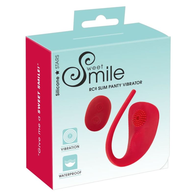 Anatomisch geformter, flacher RC Slim Panty Vibrator von Sweet Smile, der Vulva, Klitoris und Anus/Damm zugleich verwöhnt. Kann unauffällig im Slip getragen werden – auch unter/im Wasser, da er wasserdicht ist.