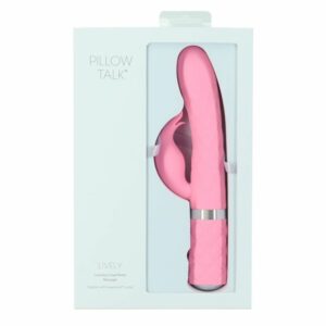 Der intensiv strukturierte, doppelmotorige Rabbitvibrator Lively von Pillow Talk dreht und windet sich tief in die Vagina, massiert dabei intensiv auch den G-Punkt – gleichzeitig wird die Klitoris von dem flexiblen 3-Zünglein-Stimulator mit Vibrationen verwöhnt.